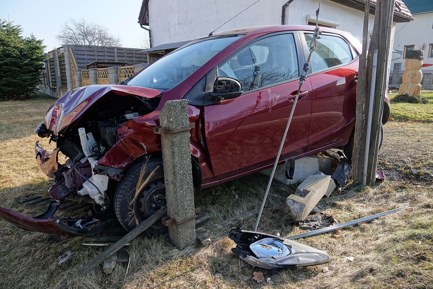 Sie streifte die Toreinfahrt eines Grundstücks, durchfuhr dieses und stieß gegen eine Mauer. Sie war danach schwer verletzt in ein Krankenhaus gebracht worden. Möglicherweise hatte die Frau gesundheitliche Probleme, die zu dem Unfall führten.