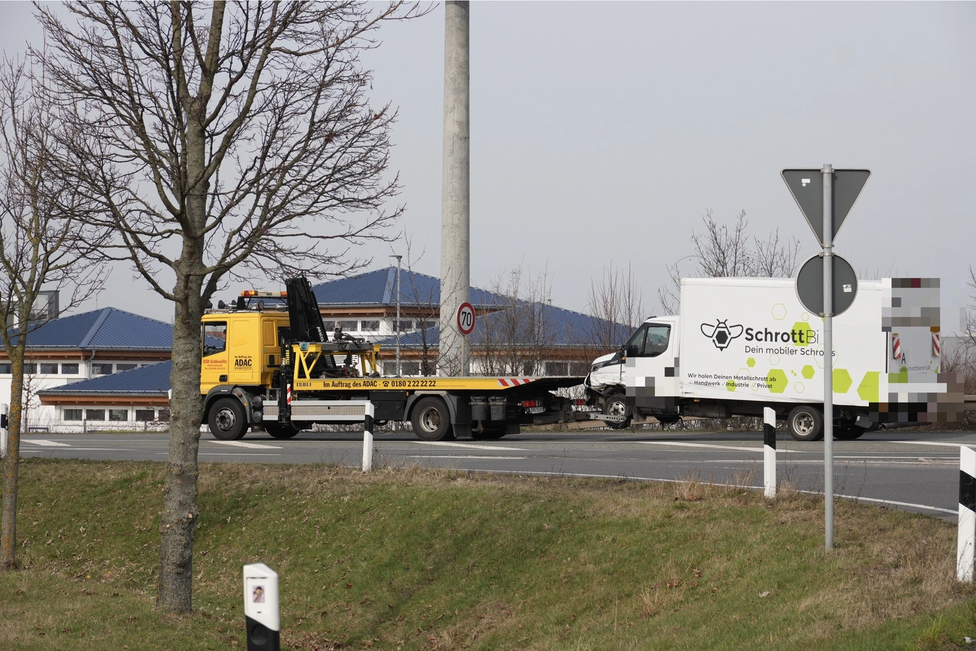 Ein Abschlepper vom ADAC hat einen Transporter nahe der A14 bei Leipzig am Haken. Was wie ein lapidarer Abschlepp-Vorgang nach einem Unfall aussieht, wird durchs Lesen der Transporter-Aufschrift extrem lustig. Denn hier wird nicht irgendwer abgeschleppt, sondern ein Fahrzeug der Firma „Schrottbienen“ mit dem Spruch „Dein mobiler Schrott“. Auf den Schrottplatz musste der Transporter vermutlich nicht, witzig ist die Situation dafür allemal.