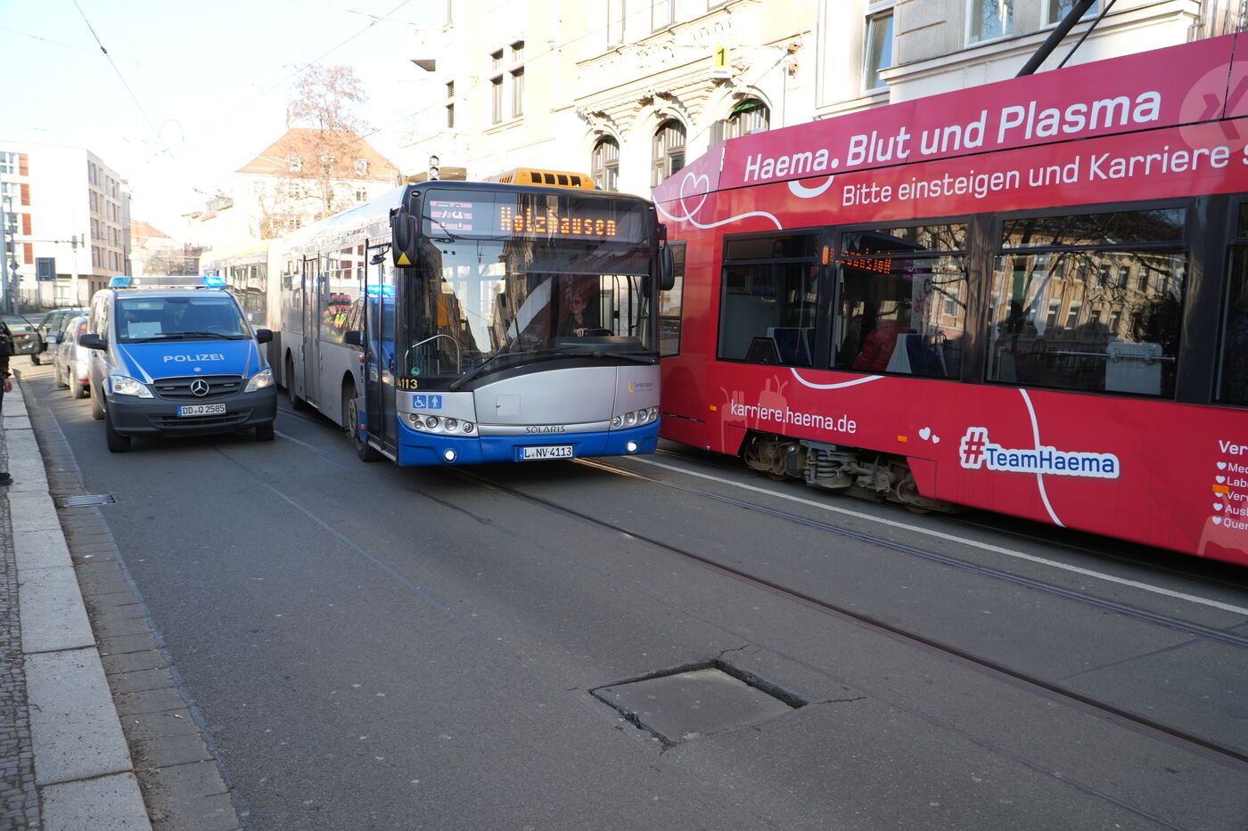 Riesenaufregung am Mittwochmittag auf der Georg-Schwarz-Straße in Leipzig-Leutzsch. Mehrere Feuerwehrfahrzeuge wurden alarmiert, auch die Polizei ist/war vor Ort. Die Straße wurde beidseitig komplett gesperrt.