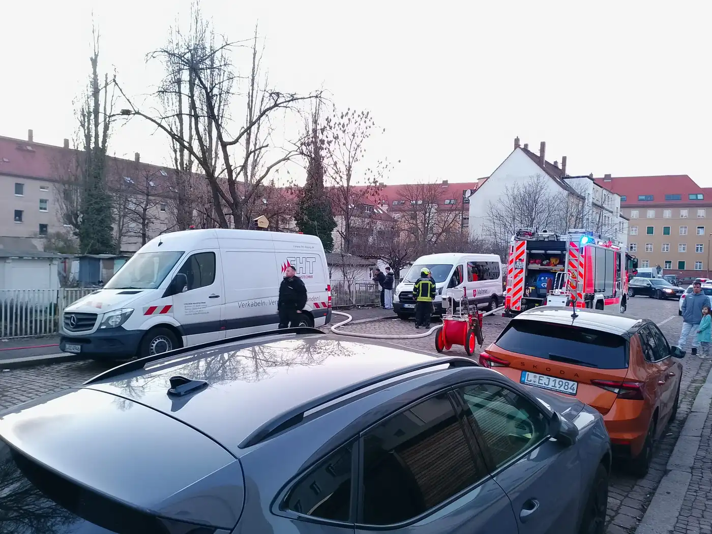 Neulindenau: Garagenhof in Flammen