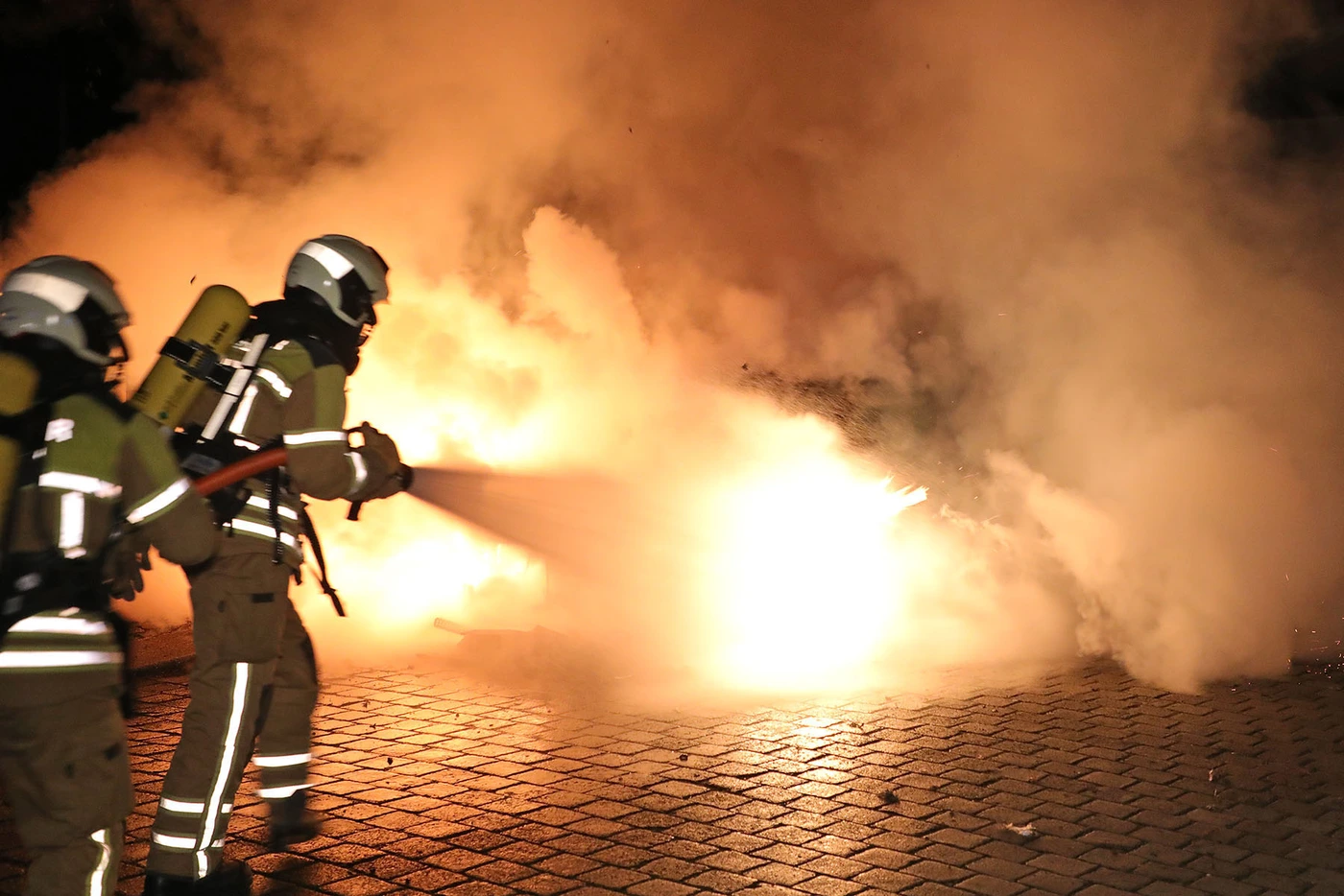 - Die Feuerwehr löschte den brennenden Pkw auf der Emil-Ueberall-Straße am Donnerstag Abend