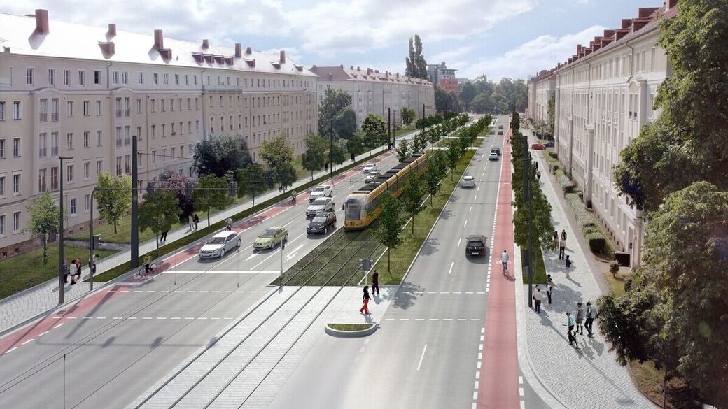 Hier soll künftig die Straßenbahn fahren, die die Buslinie 61 ersetzt. Eine Straßenbahn, die von Löbtau über die Nossener Brücke bis zur Uni fährt. Der Vorteil: es können viel mehr Fahrgäste mitgenommen werden.