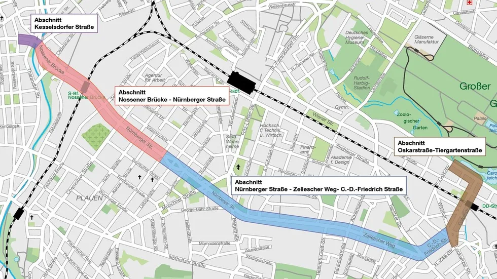 Von Mai 2028 bis Frühjahr 2030 soll der grundhafte Ausbau der südlichen Straßenhälfte der Nürnberger Straße erfolgen sowie die neue Straßenbahntrasse über die Nossener Brücke gebaut werden. Bis Mitte 2031 ist dann die Herstellung des südlichen Brückenzugs der Nossener Brücke vorgesehen.