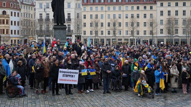 Auf dem Neumarkt versammelten sich am Freitagnachmittag unter dem Motto „Solidarität mit der Ukraine“ Schätzungen zufolge rund 1500 Menschen. Unter ihnen waren auch Politiker wie Oberbürgermeister Dirk Hilbert, SPD-Generalsekretär Kevin Kühnert und Wirtschaftsminister Martin Dulig. Kiews Bürgermeister Vitali Klitschko wurde per Video zugeschaltet. Er bedankte sich für die Unterstützung: „Das ist lebenswichtig für uns“. Den russischen Angriffskrieg bezeichnete Klitschko als Bedrohung für die gesamte demokratische Welt. „Wir kämpfen jeden Tag für die Unabhängigkeit und Freiheit, nicht nur unseres Land und seiner Bürger. Wir kämpfen für eine friedliche Zukunft eines jeden Europäers.“