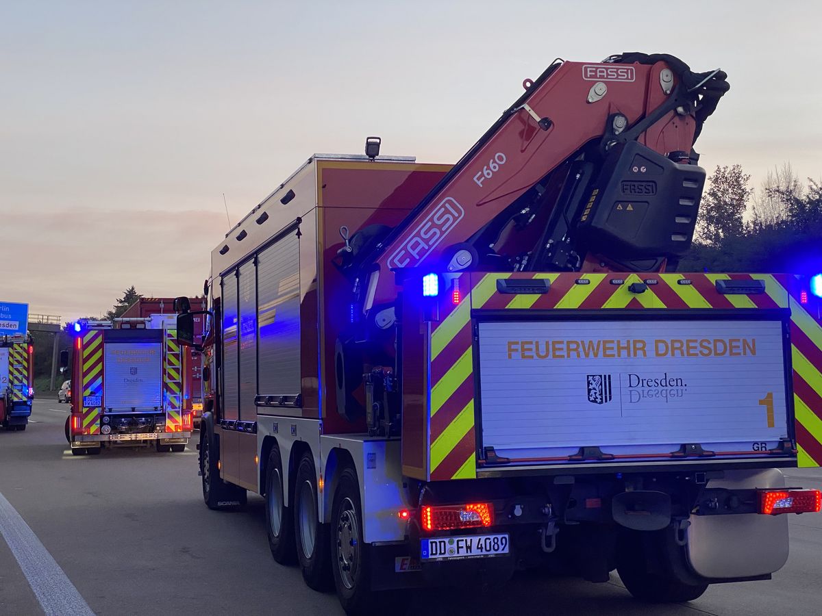 Gegen 06:45 Uhr waren zwischen den Anschlussstellen Dresden-Hellerau und Dresden-Flughafen zwei LKW und ein PKW zusammengestoßen. Dabei wurde ein Mensch verletzt und nach Angaben der Feuerwehr in ein Krankenhaus gebracht. Drei Fahrspuren waren blockiert. Die Feuerwehr war mit Kranwagen und 33 Kräften vor Ort.