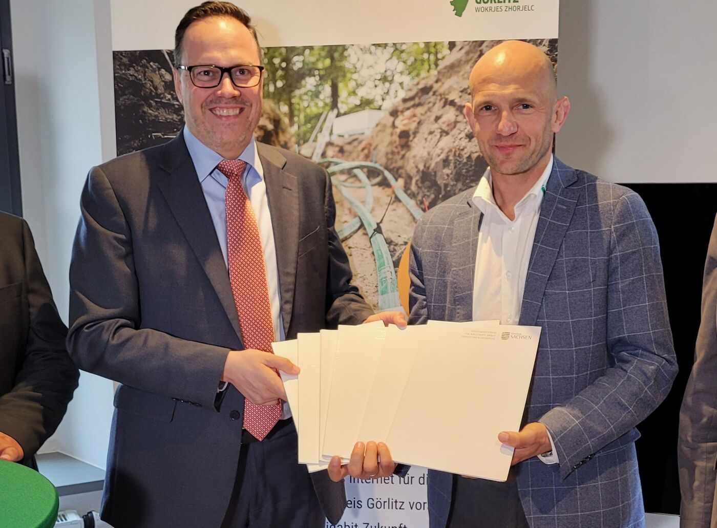 Weitere über 22.600 Haushalte im Kreis Görlitz bekommen in den nächsten drei Jahren schnelles Internet. Dafür werden insgesamt 133 Millionen Euro investiert. Sachsens Wirtschaftsminister Dirk Panther übergab heute in Friedersdorf die Förderschecks an Landrat Stephan Meyer. Es handelt sich um das größte Infrastrukturprojekt in der Geschichte des Kreises Görlitz. Start für den Breitbandausbau war vor sechs Jahren. Seitdem wurden über 13.000 Anschlüsse gelegt oder vorbereitet.