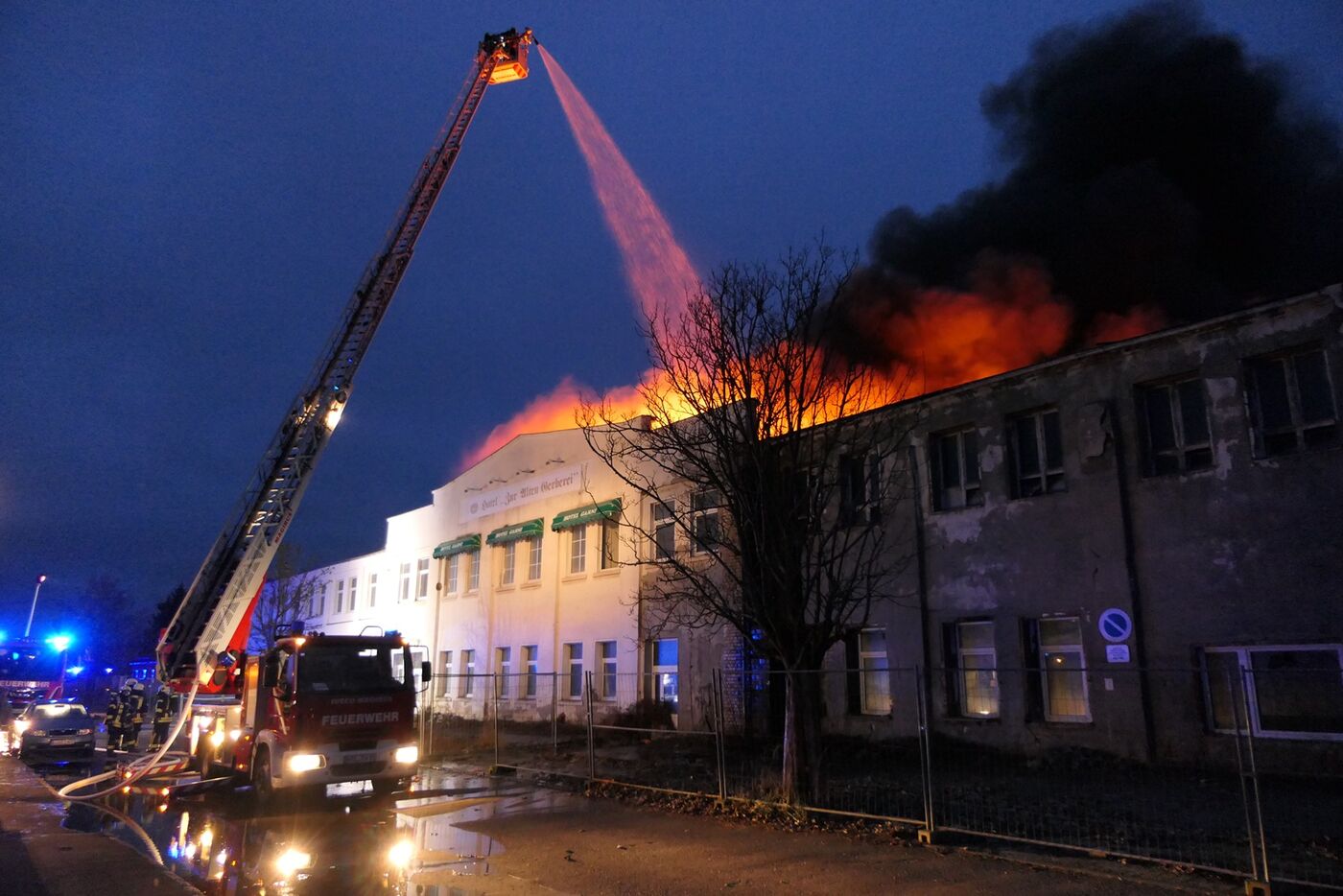 Das Produktionsgebäude des früheren VEB Sachsenpelz brannte am 7. Januar gegen 7 Uhr lichterloh.
