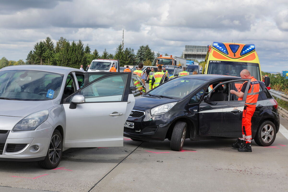 Während der Unfallaufnahme kam es gegen 11:45 Uhr kurz vor Hohenstein-Ernstthal im Rückstau zu einem weiteren Unfall. Ein 62-jähriger krachte in seinem VW auf einen wartenden Lkw. Der VW schleuderte gegen die Leitplanke und kam entgegengesetzt der Fahrtrichtung zum Stehen. Der Fahrer wurde erstaunlicherweise nur leicht verletzt.