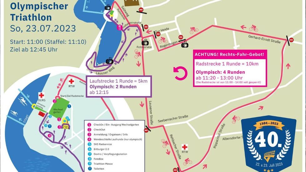 Dieses Wochenende steht in Leipzig im Zeichen des Triathlon. Zum 40. Mal findet die Veranstaltung in Leipzig statt. In diesem Jahr haben sich 1.800 Sportler für die verschiedenen Wettkämpfe angemeldet. Los geht es am Samstag mit dem Kinder- und Fitness- und Staffel -Triathlon. Am Sonntag steht der Olympische Triathlon an. Geschwommen wird im Kulkwitzer See, die Radstrecke führt vom See zum Gasthof Lausen. Und auch die Laufstrecke führt entlang des Sees zum Gasthof und wieder zurück. Die Wettkampfstrecken sind am Samstag bis 18 Uhr und am Sonntag bis 15 Uhr gesperrt.