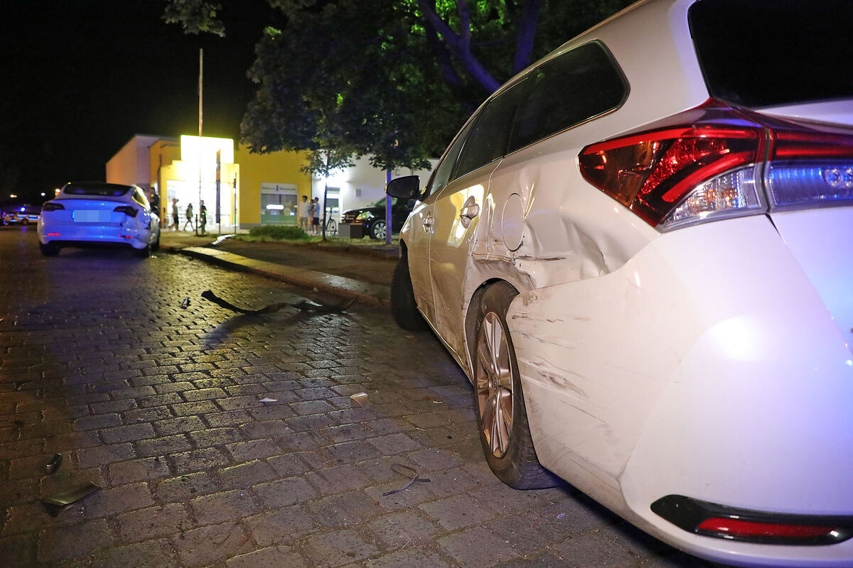 Bei einem Unfall in der Dresdner Friedrichstadt ist am Dienstagabend hoher Schaden entstanden. Nach Polizeieinangaben hatte ein 62-Jähriger aus bislang unbekannten Gründen sein Auto nicht mehr unter Kontrolle. Er rammte mit einem A6 zwei geparkte Autos, fällte ein Verkehrsschild und krachte gegen eine Hauswand. Der Mann blieb unverletzt. Nach neusten Informationen beläuft sich der Schaden auf gut 100.000 Euro.