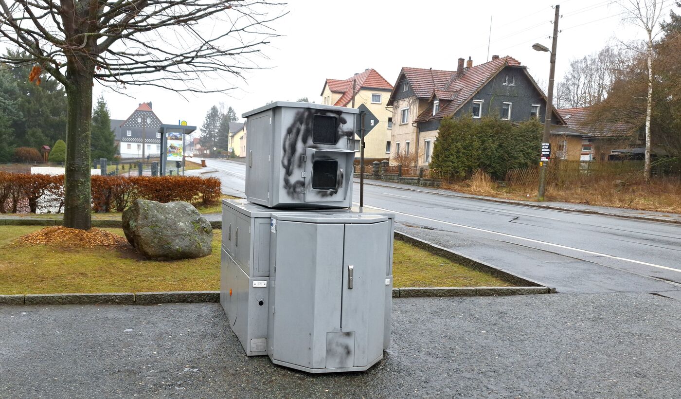 Dieser Blitzer soll 2025 auch wieder eingesetzt werden. Das Gerät auf dem Bild wurde gesprengt. Die Landkreisverwaltung hat ein neues Leasing-Gerät bestellt.