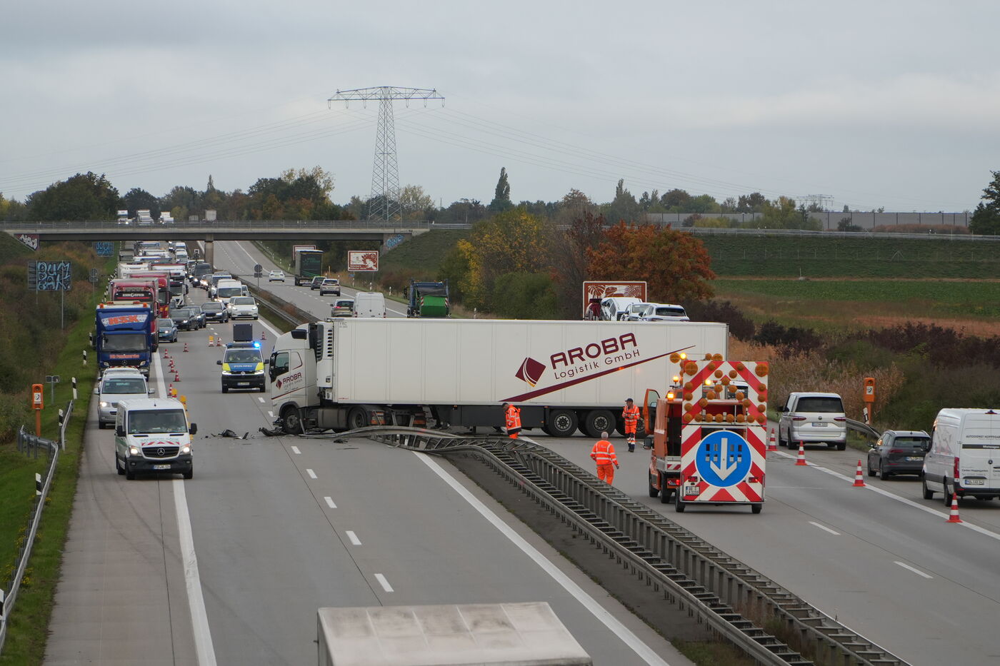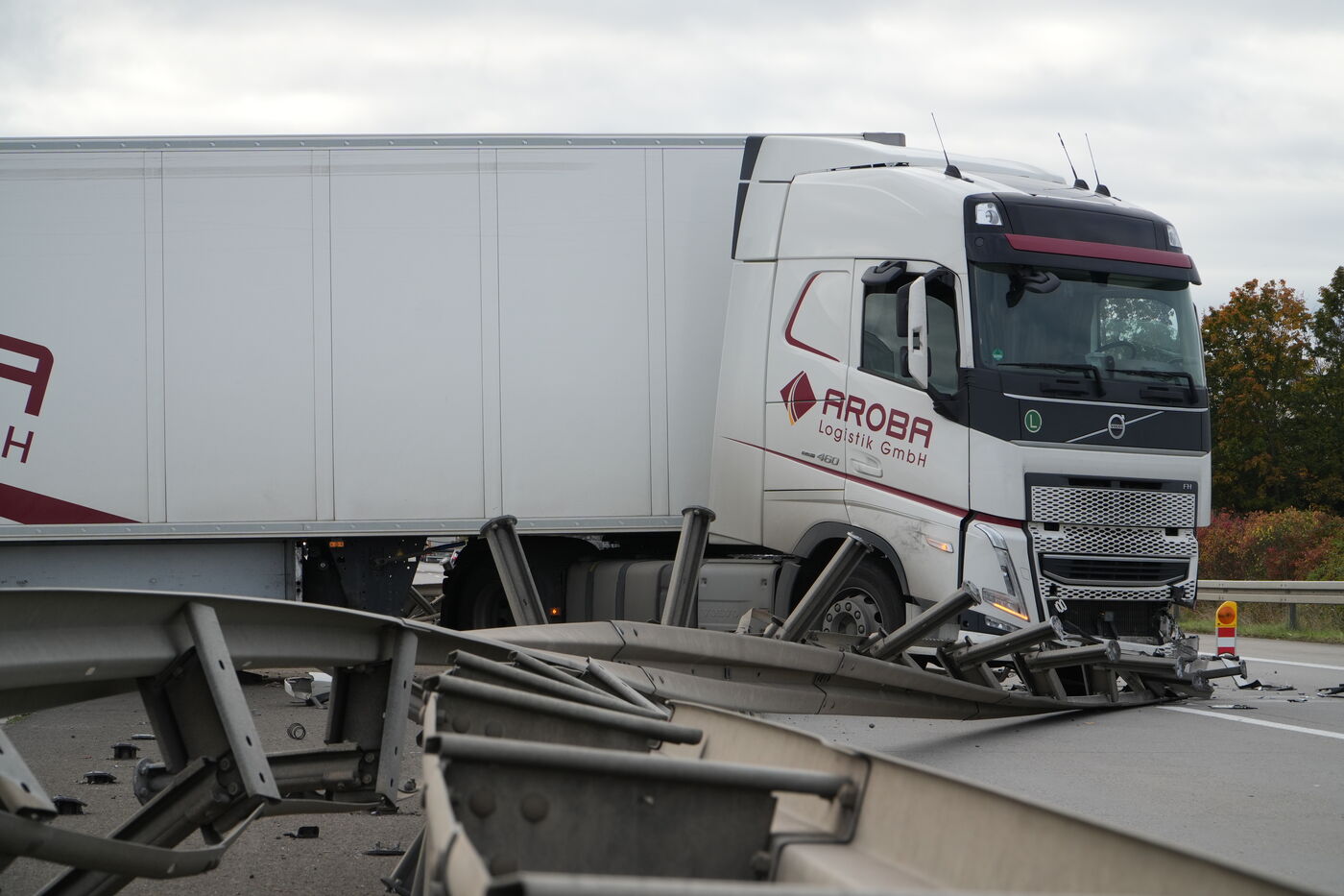 Der Lkw wurde leicht, die Mittelleitplanke schwer beschädigt.
