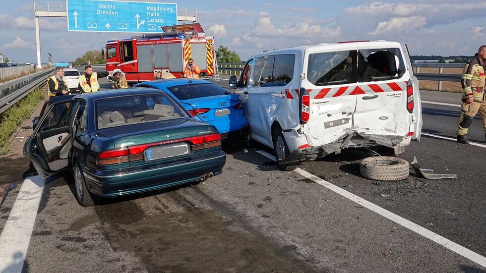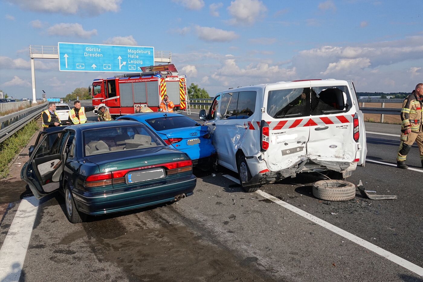 Kurz vor Nossen kollidierten nach Informationen unseres Reporters vier Fahrzeuge. Zwei Personen wurden schwer verletzt und in Krankenhäuser eingeliefert.
