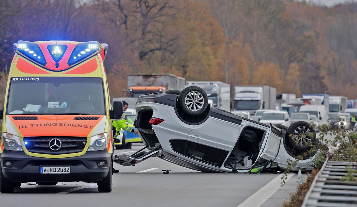 - Der PKW hat einen Laster touchiert und sich dann überschlagen.