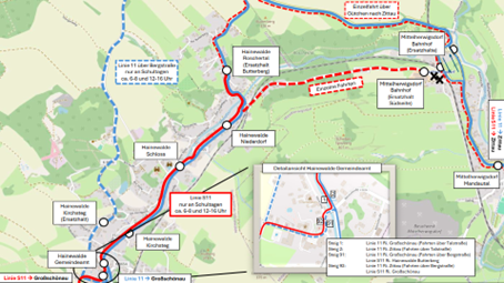 Die Umleitungen und Ersatzverkehre sind auf dem Kartenausschnitt dargestellt.