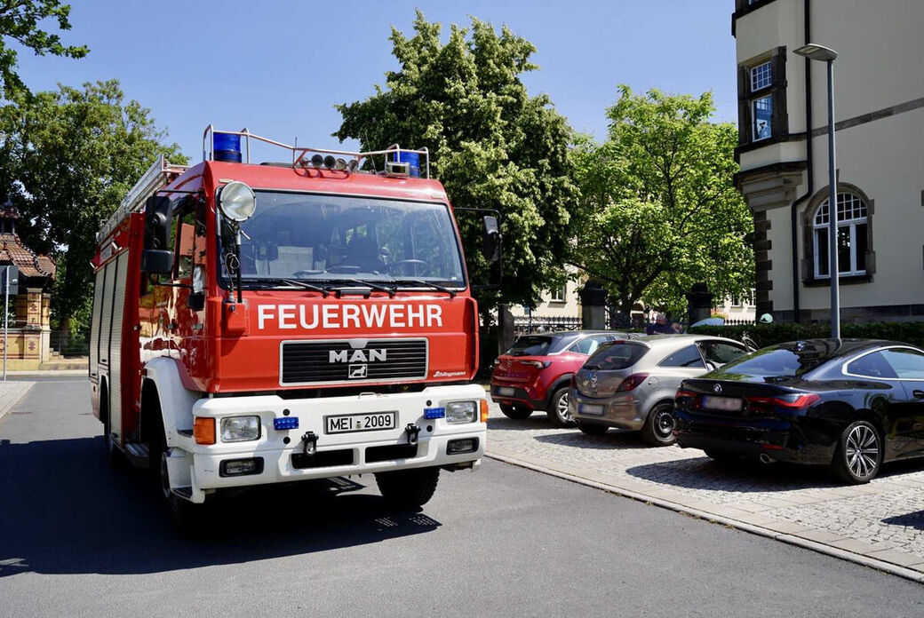 - Die Feuerwehr beweist vollen Körpereinsatz, um den Wagen zu befreien.