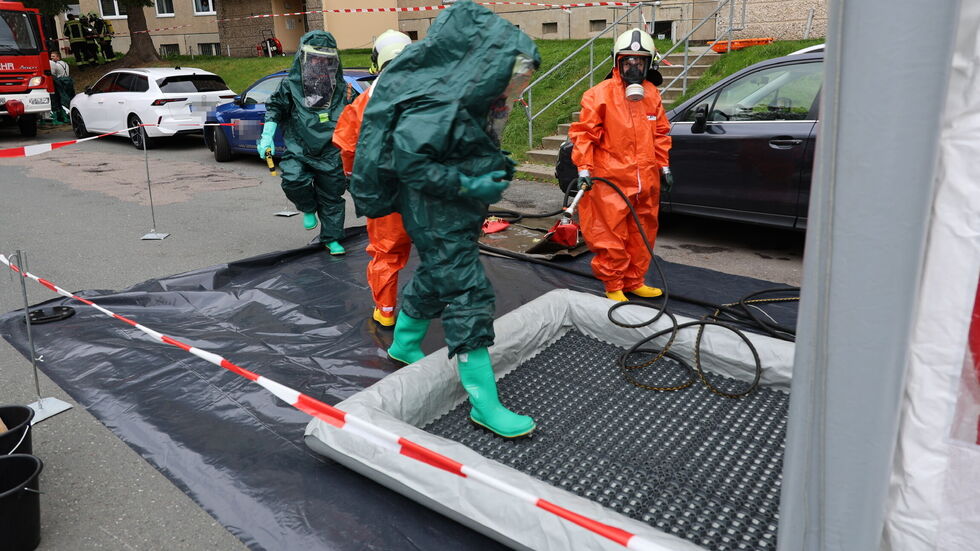 Laut Polizei hatte der Hauseigentümer am frühen Mittwochnachmittag im Keller eine Flasche mit Brom verschüttet. Die Hintergründe sind noch nicht bekannt. Die Chemikalie wurde unter anderem durch neutralisierende Stoffe bekämpft - die Messwerte gingen den Angaben zufolge zurück.