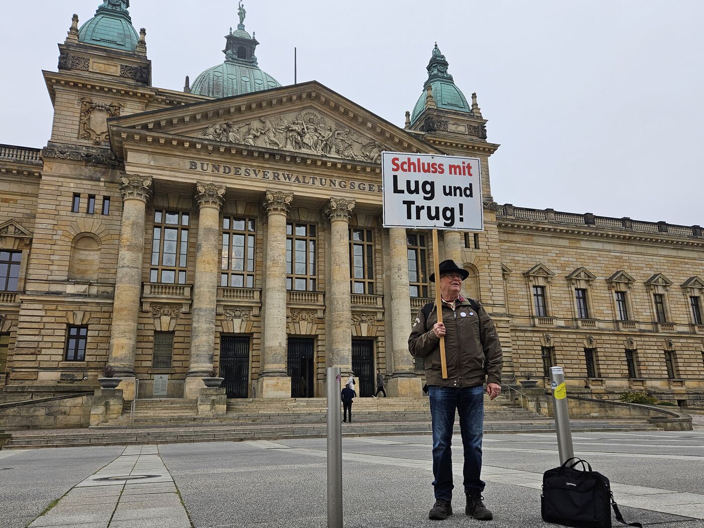 Die wenigen Demonstranten vorm Leipziger Bundesverwaltungsgericht hatten auch Transparente dabei.