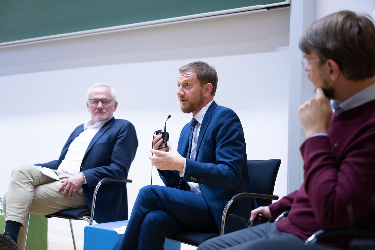 Michael Kretschmer bei einer Podiumsdiskussion in Dresden