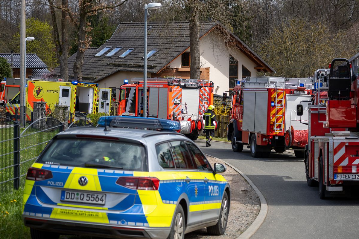 In der Beethovenstraße in Jößnitz steht ein Großaufgebot an Rettungskräften