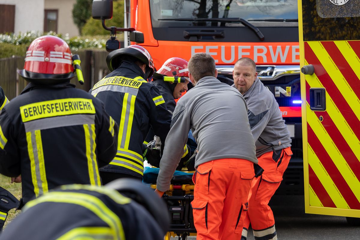 Feuerwehrleute konnten den Verletzten mit einem Hebekissen befreien. Er wurde mit dem Rettungswagen ins Krankenhaus gebracht. Die Feuerwehr war mit mehr als 20 Kameraden aus Plauen, Jößnitz und Neundorf im Einsatz. Auch die Polizei war vor Ort.