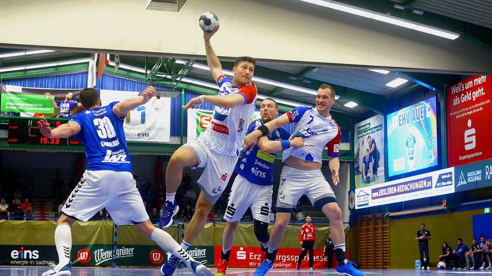 Für die Handballer des EHV Aue wird die Lage in der 2. Bundesliga immer aussichtsloser. Das Team des neuen Trainers Stephan Just unterlag im Kellerduell gegen Großwallstadt nach enttäuschender Leistung klar mit 19:27. Zu allem Überfluss sah Kreisläufer Bengt Bornhorn die rote Karte. Ihm droht eine längere Sperre. Bereits nach 45 Minuten war beim Stand von 12:20 vor knapp 1.000 Zuschauern eine Vorentscheidung gefallen. Bester Auer Werfer war Aki Egilsnes mit fünf Toren.