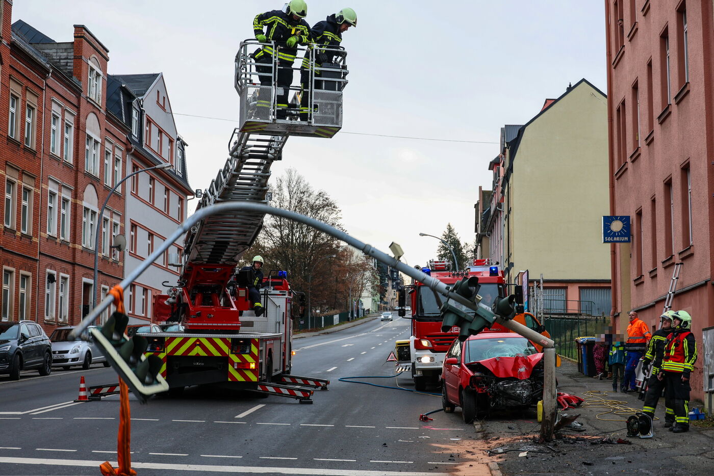 - Der Ampelmast musste von der Feuerwehr entferntwerden.