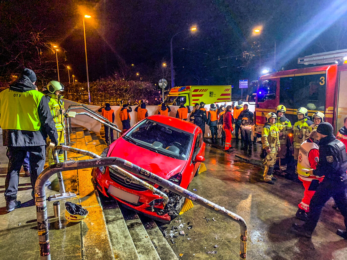 Auto kracht in Treppe am Dynamo-Stadion - Zwei Verletzte