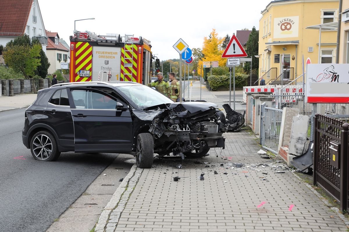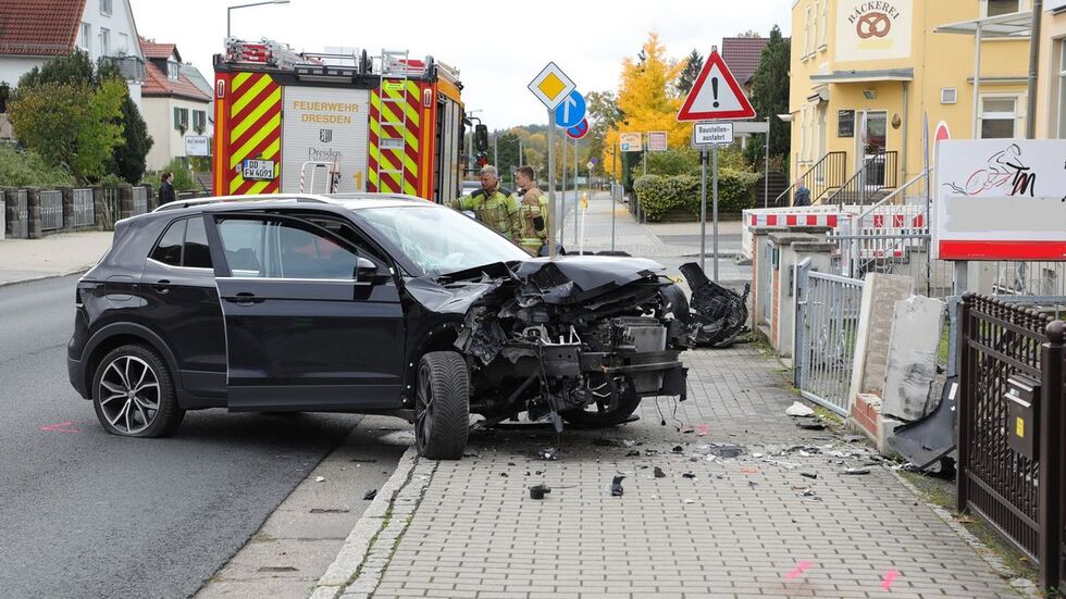 Auto kracht in Weixdorf gegen Mauer