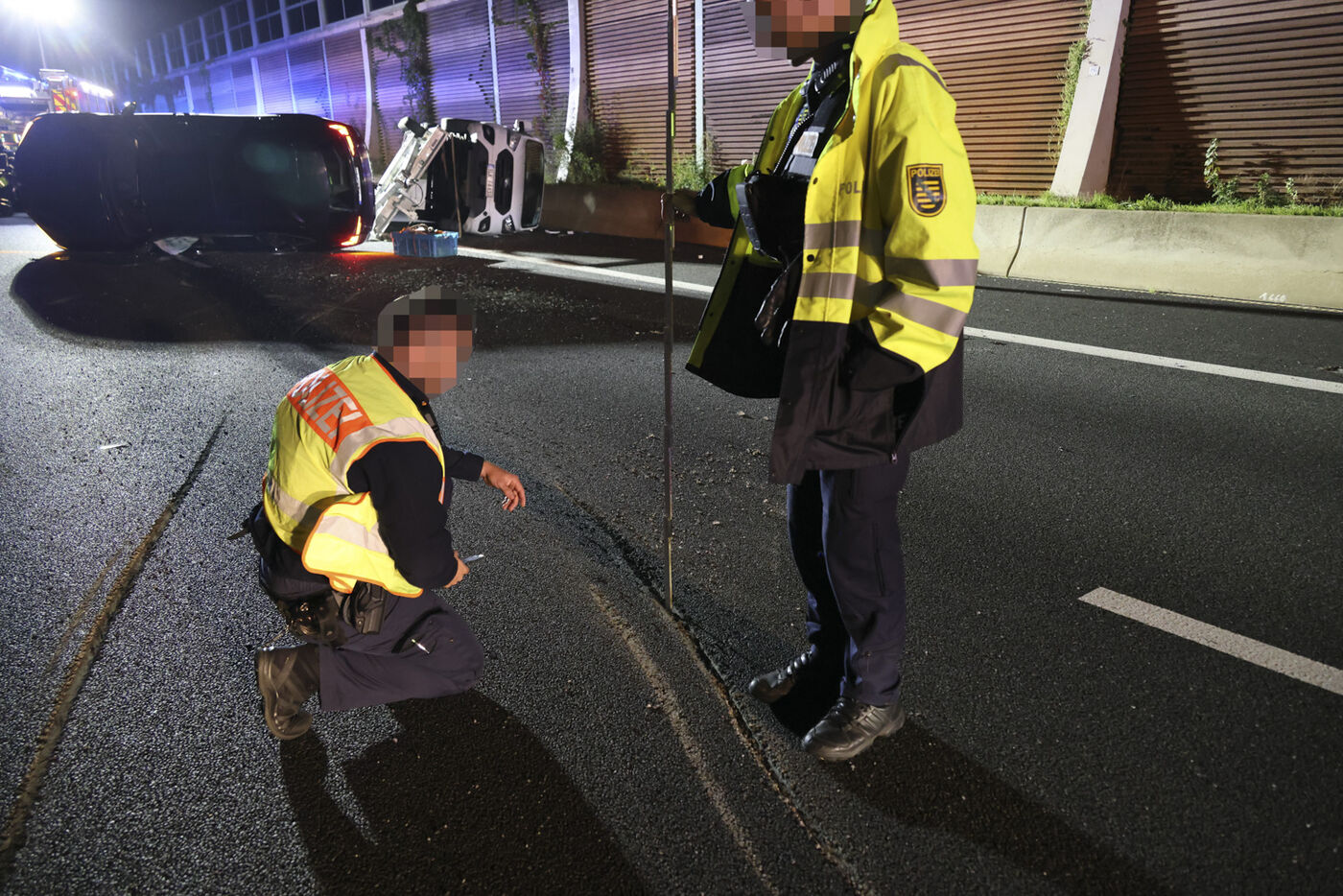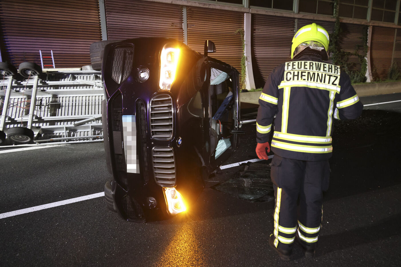 A 4 bei Chemnitz: Nach einem Spurwechsel kippt ein BMW, der Asphalt wird schwer beschädigt. Schaden fast 350.000 Euro