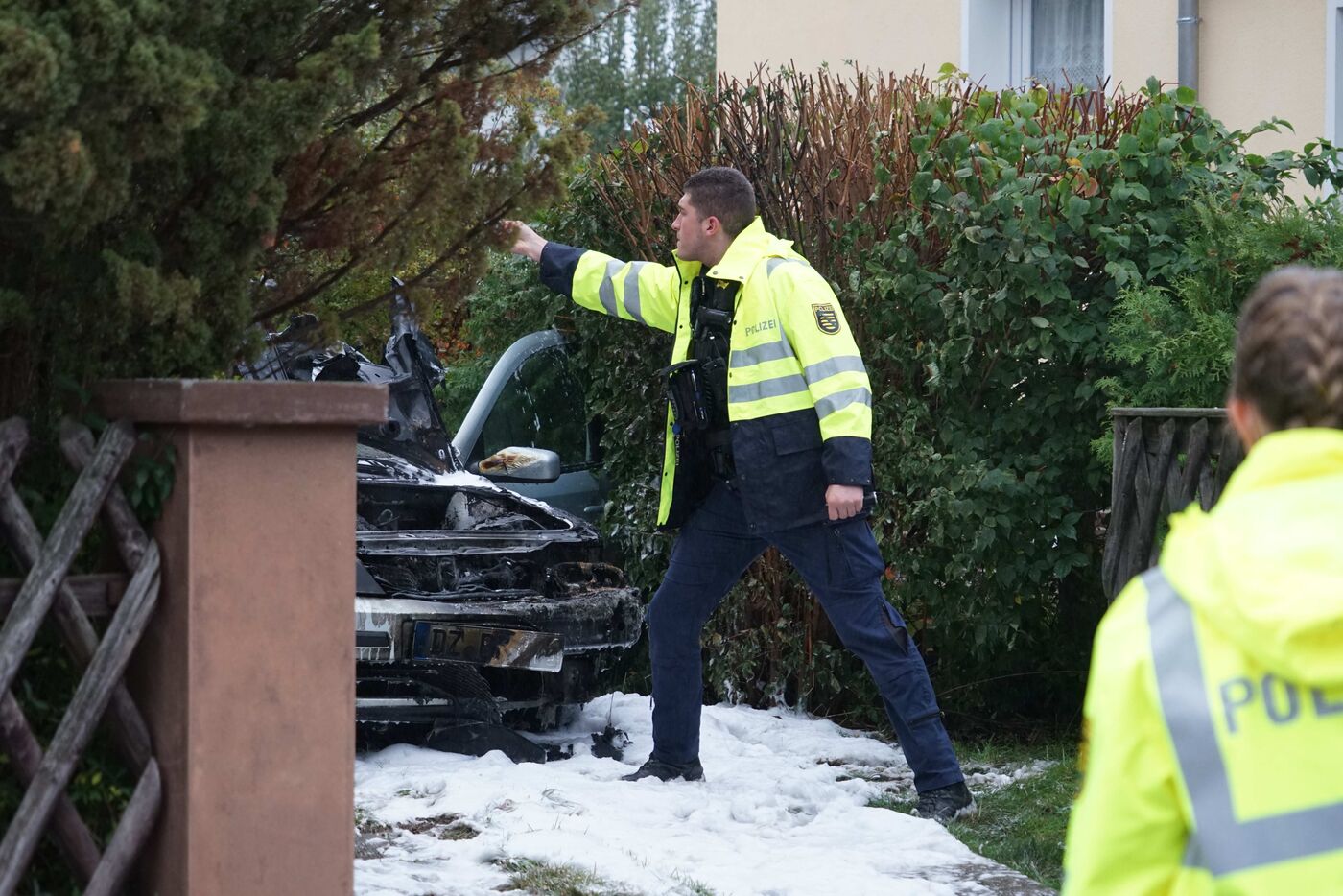 Polizisten am Brandort.