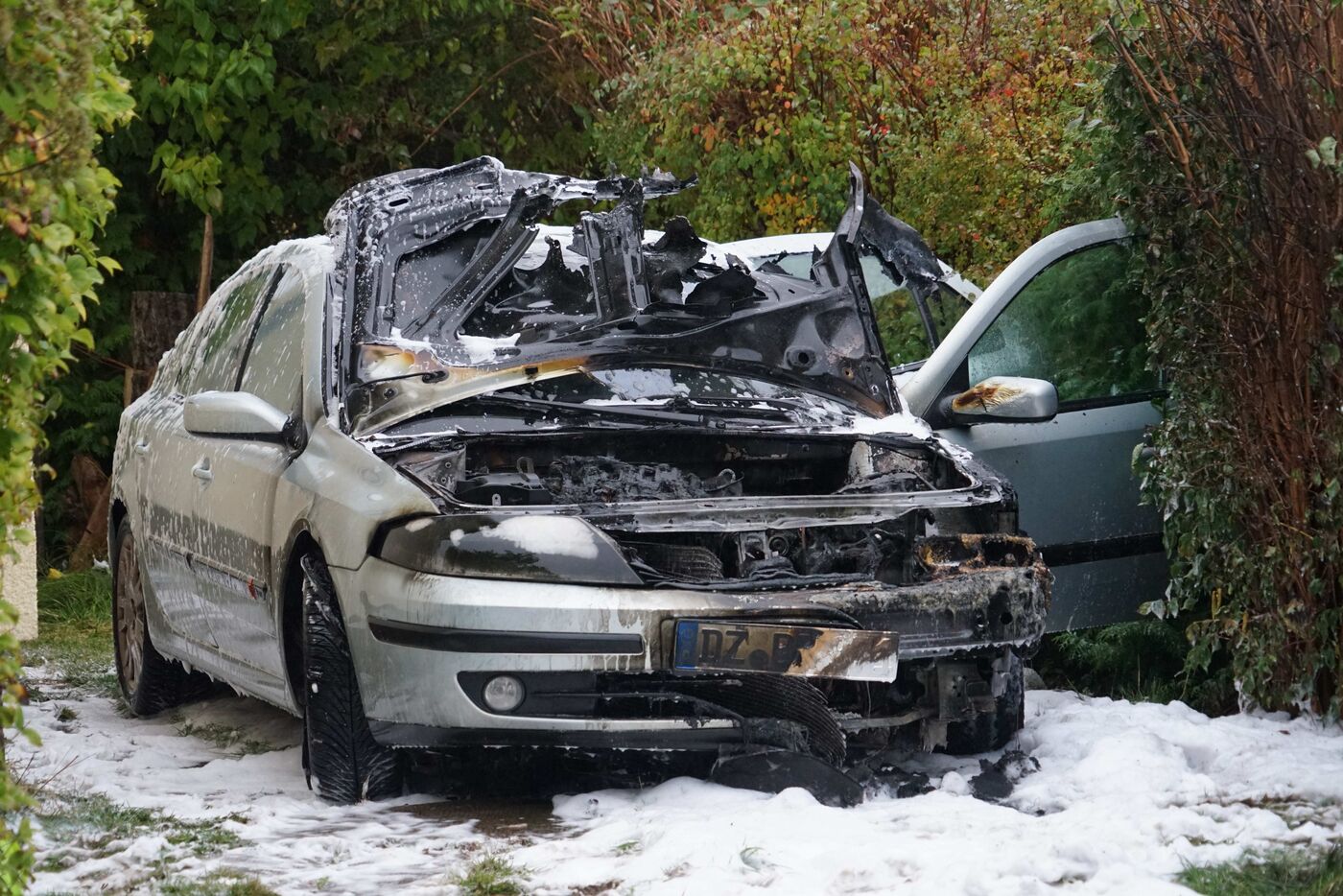 Der Wagen wurde durch den Brand stark beschädigt.