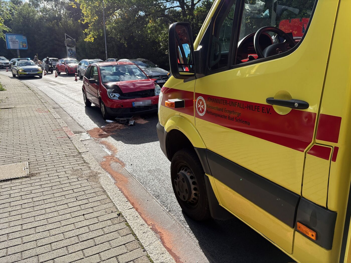 Mitten im Berufsverkehr hat ein Unfall auf der B 169 in Bad Schlema am Freitagnachmittag für Behinderungen gesorgt. An einer Ampelkreuzung war ein Ford auf einen Seat aufgefahren. Dabei wurde der Fahrer des Fords verletzt. Er kam per Rettungswagen ins Krankenhaus. Die Feuerwehr rückte aus, um zu verhindern, das Betriebsmittel in die Kanalisation gelangen. Während der Bergungsarbeiten bildete sich ein langer Stau, so ein Vor-Ort-Reporter.