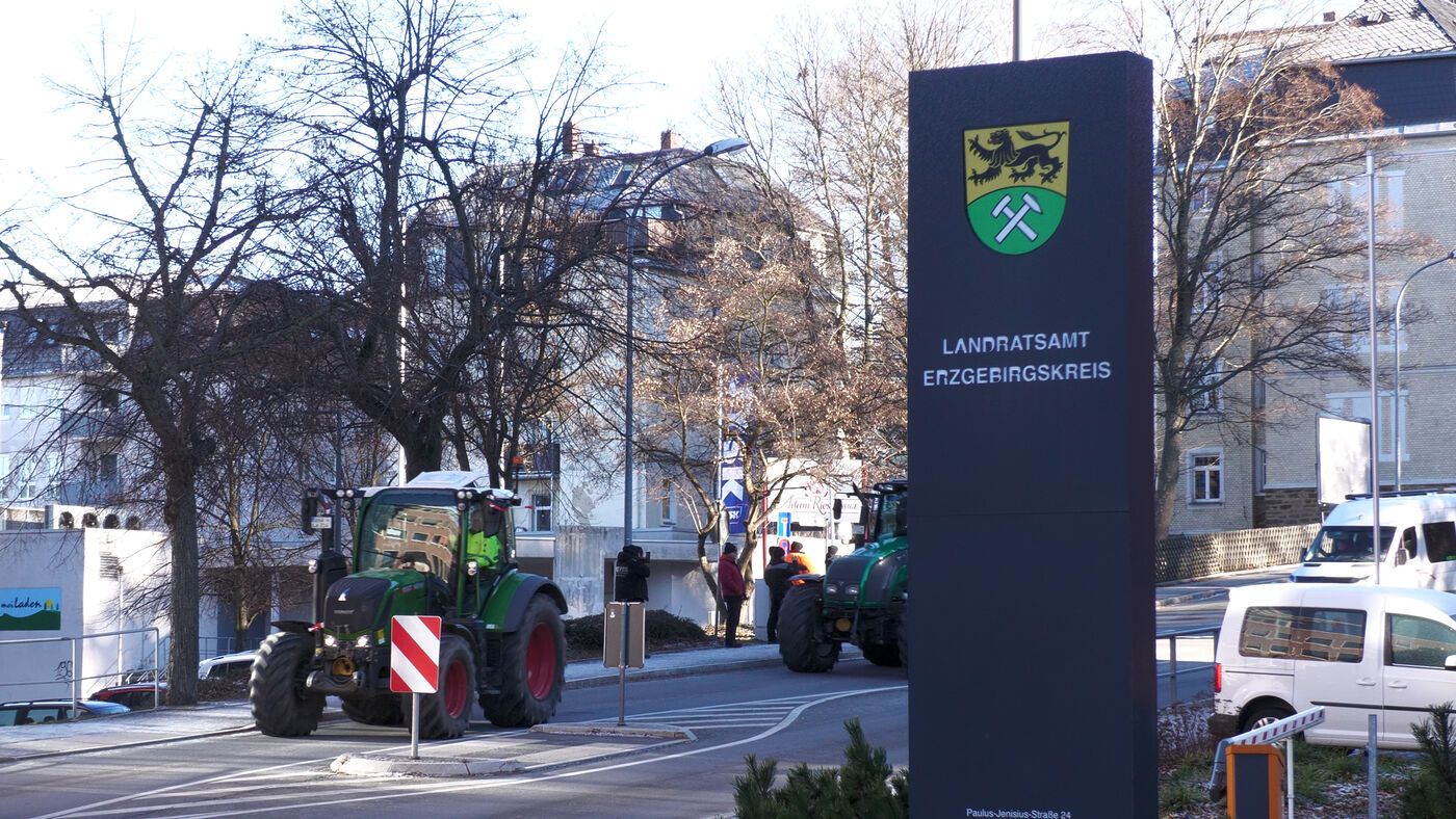 Wie es am Montag mit den Bauernprotesten im Erzgebirge weitergeht, ist nicht ganz klar. Landratsamt und Vertreter der Landwirte hatten sich bei einem Treffen am Freitag darauf geeinigt, dass der Protest der Bauern und Unternehmer diese Woche mit dem Landratsamt abgestimmt werden soll. Totalblockaden werden vonseiten des Amtes weiter abgelehnt.