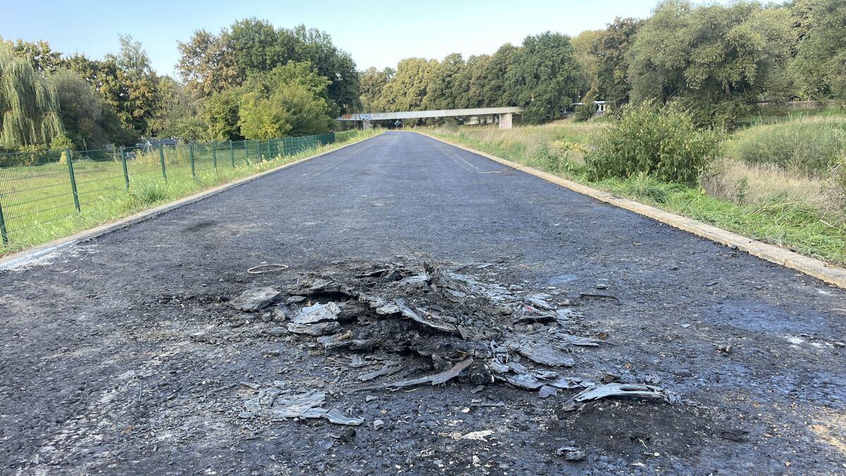 Baugerät am Muldendamm nach Feuer völlig zerstört