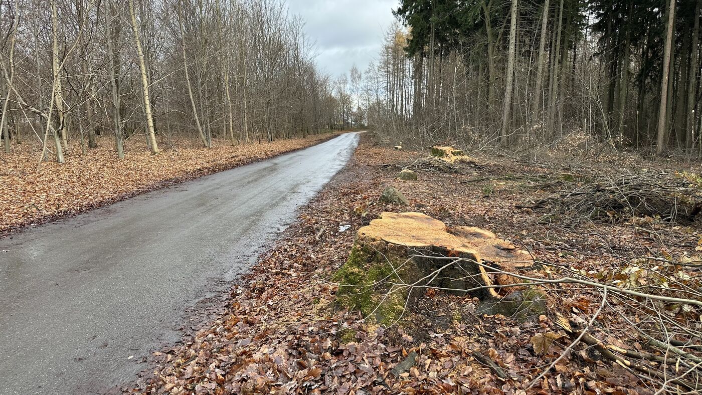 Zuvor hatte das Zwickauer Tiefbauamt die Straße sperren lassen und lediglich einen Sicherheitsschnitt verlangt, weil große Äste drohten, auf die Fahrbahn zu stürzen. Der Waldeigentümer entschied sich aber für das Fällen der Bäume, was ihm erlaubt wurde. Sie hätten sich mit Nadelgehölzen nicht vertragen, die in jüngerer Vergangenheit dort gepflanzt wurden.