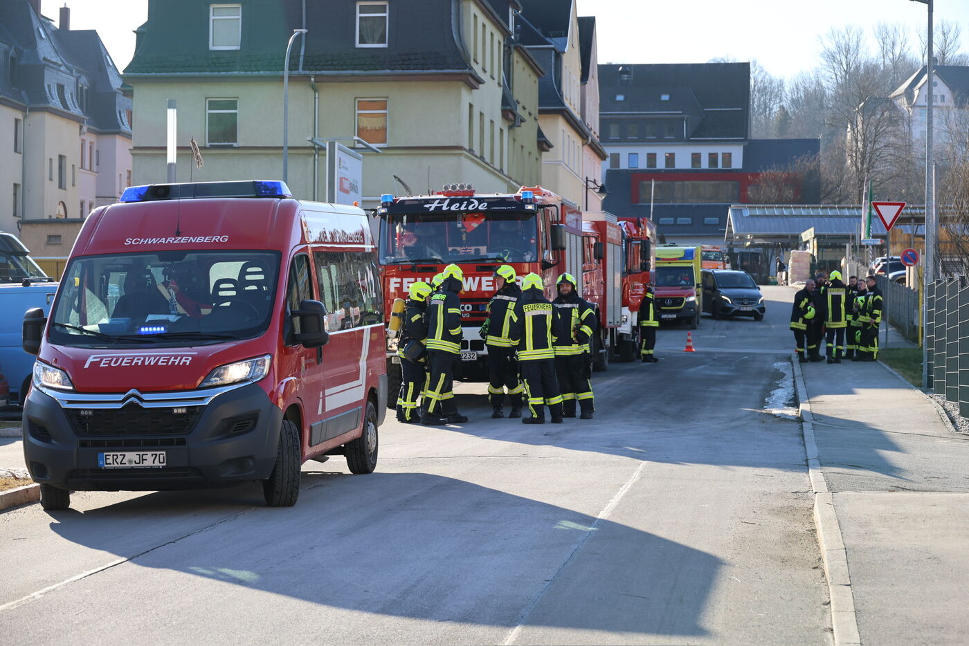 In Schwarzenberg hat das schnelle Handeln aller Beteiligten einen Wohnungsbrand verhindert. Am Montagmittag hatte in einer Wohnung an der Robert-Koch-Straße ein Adventskranz Feuer gefangen. Ein Nachbar hörte den Rauchmelder und rief die Mieterin an. Als diese zurück in ihre Wohnung kam, nahm sie die brennende Schale und warf sie aus dem Fenster. Ein Feuerwehrmann der Feuerwehr Beierfeld, der im selben Gebäude wohnt, löschte den Adventskranz anschließend mit Schnee. Die alarmierte Feuerwehr belüftete die Wohnung. Die Mieterin wurde vom Rettungsdienst untersucht, musste aber nicht in ein Krankenhaus. Beschädigt wurden lediglich ein Tisch und eine Lampe.