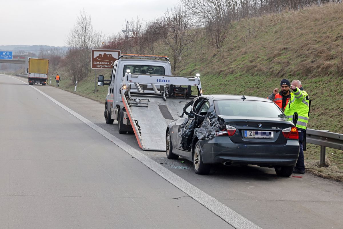 Bei einem Unfall auf der A4 ist am Montagmorgen (8:45 Uhr) ein Autofahrer verletzt worden. Er hatte zwischen Glauchau-West und Glauchau-Ost wegen eines technischen Defekts auf der Standspur angehalten, wie unser Reporter vor Ort berichtet. Der Mann blieb im Auto sitzen und rief mit dem Handy den Pannenservice an. In diesem Moment streifte ein LKW das Fahrzeug und riss Teile der Tür und der Fahrzeugverkleidung ab. Der PKW-Fahrer wurde verletzt und kam ins Krankenhaus.
