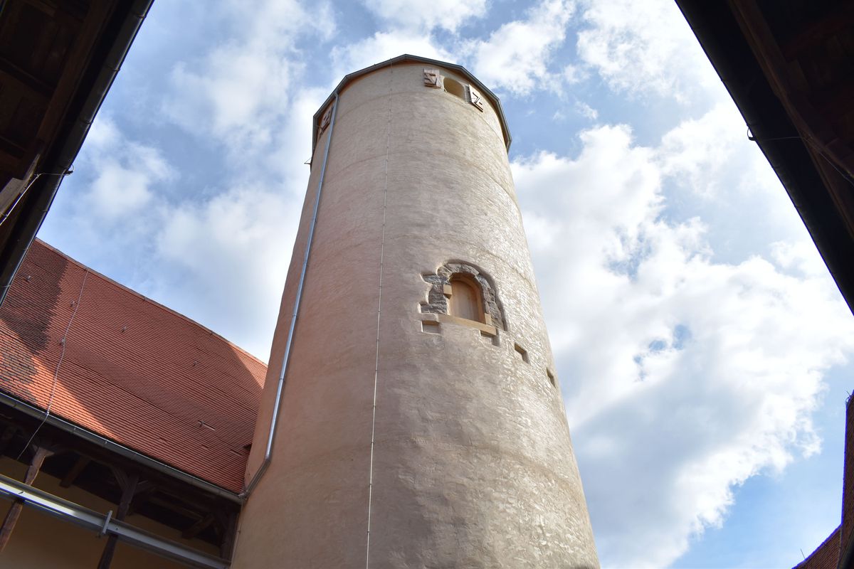 Der Turm der Burg Schönfels erstahlt in neuem Glanz.
