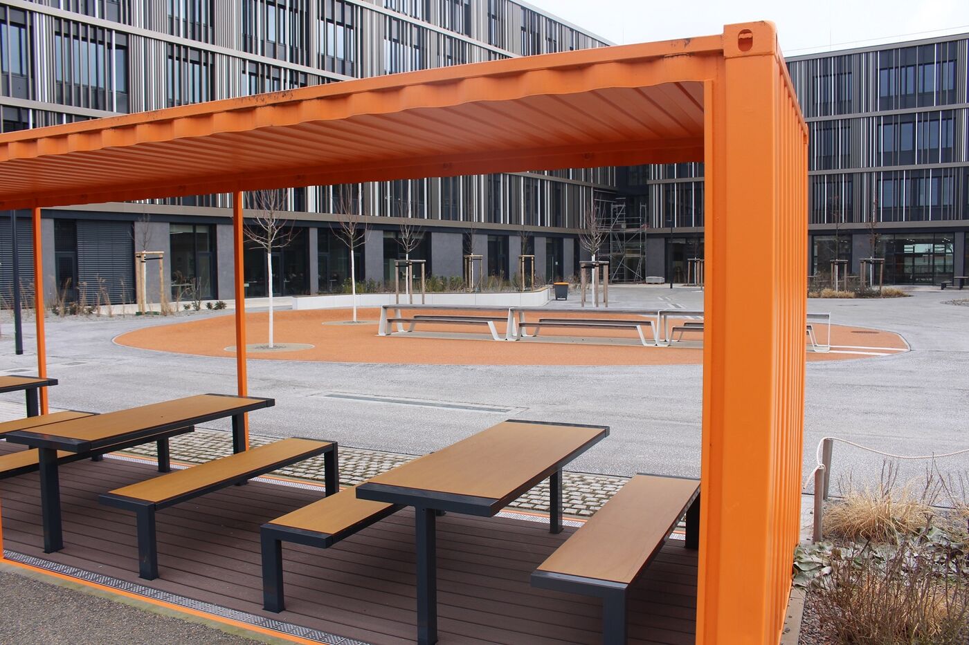Entstanden sind unter anderem Lagercontainer für Sportgeräte, ein überdachter Pausenunterstand sowie ein „grünes Klassenzimmer“ für Lernmöglichkeiten im Freien.