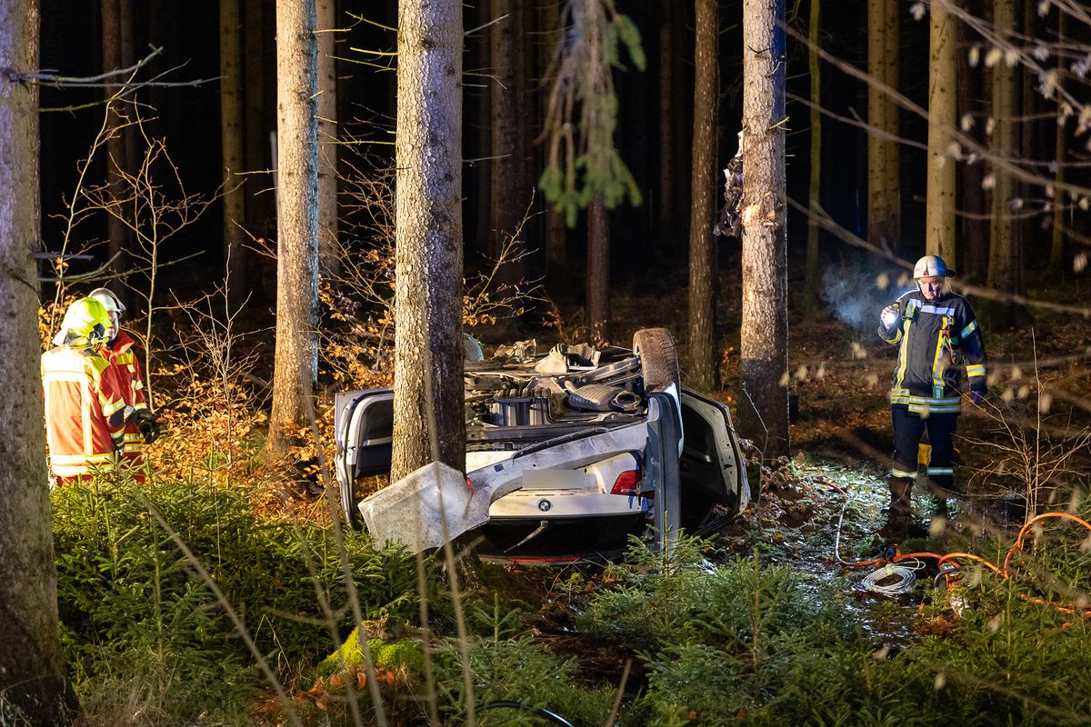 Wie die Zwickauer Polizei mitteilte, kam der Wagen in einer langgezogenen Kurve von der Fahrbahn ab, überschlug sich mehrfach und stieß gegen mehrere Bäume. Am Ende landete das Auto auf dem Dach. Der Fahrer wurde eingeklemmt. Er musste von der Feuerwehr befreit werden. Ein Atemalkoholtest ergab einen Wert von fast einem Promille.