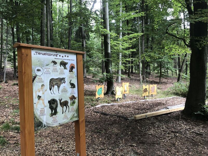 Familien können auf der knapp vier Kilometer langen Route auf Entdeckertour gehen und dabei an zwölf Stationen ihr Wissen zu Natur und Tieren unter Beweis stellen. Sportlich wird es außerdem beim Tierweitsprung und Zapfenweitwurf im Wald. Ein Wildschweinabdruck als Logo kennzeichnet dabei den Weg.