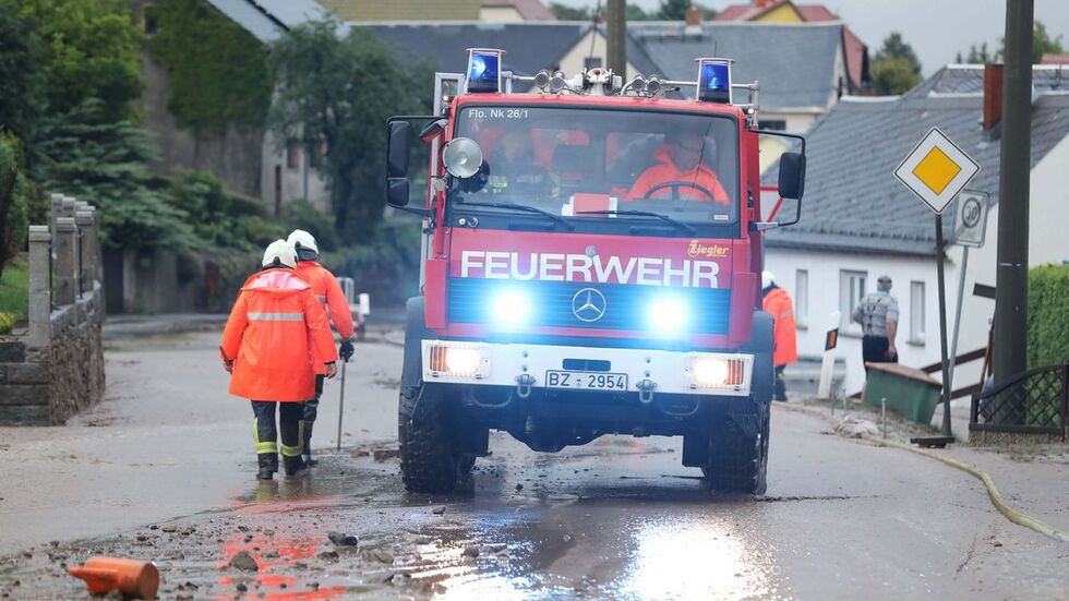 In Großschweidnitz brannten zwei Handwagen nach Blitzeinschlag. Daneben befindet sich ein Gebäude. Die Feuerwehr konnte ein Übergreifen der Flammen verhindern. In Schmölln-Putzkau bei Bischofswerda überfluteten Wassermassen eine Straße. In Neukich/Lausitz wurde Schlamm auf die B98 gespült. In Bautzen und Umgebung sind Feuerwehrleute ausgerückt. Sie pumpen Keller und Garagen aus. Auf Straßen steht das Wasser zentimeterhoch. Einige sind unpassierbar und wurden gesperrt. „Alle Kräfte im Einsatz“, twitterte die Bautzener Feuerwehr. Die Einsatzkräfte werden durch das Technische Hilfswerk unterstützt.