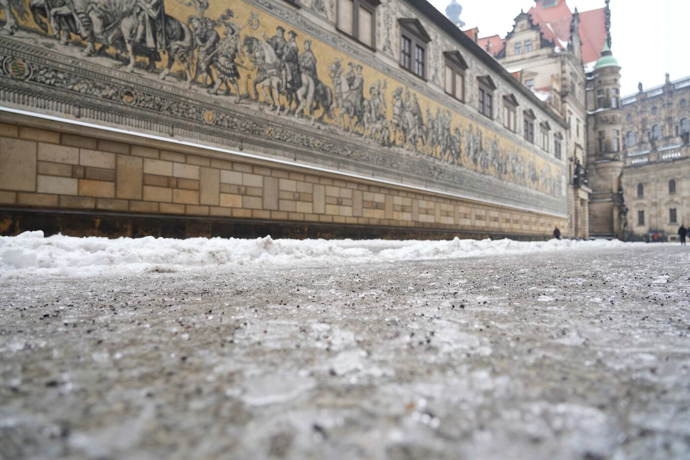 - Trotz Streumaßnahmen waren die Gehwege in Dresden stellenweise spiegelglatt