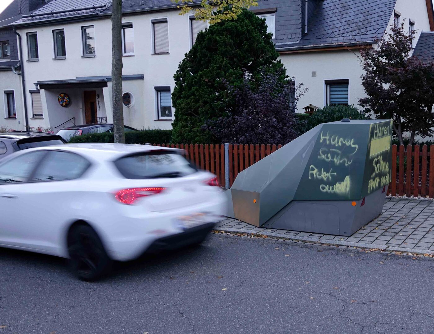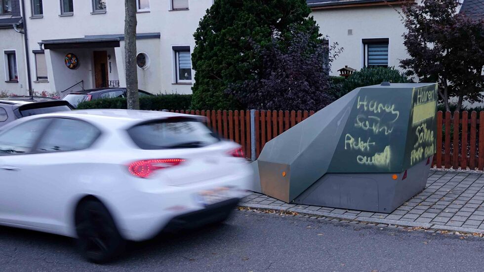 Unbekannte haben am Wochenende in Glösa einen der beiden mobilen Blitzer besprüht und damit außer Gefecht gesetzt. Der Blitzeranhänger stand an der Schmidt-Rottluf-Straße. Unbekannte besprühten das komplette Blitzerfeld mit grüner Farbe und versahen das Gerät mit diversen Schriftzügen. Die genaue Tatzeit ist laut Polizei unklar.