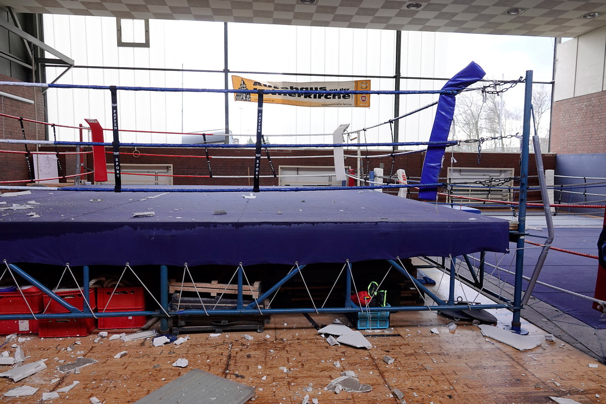 Boxhalle im Sportforum durch Sturm schwer beschädigt
