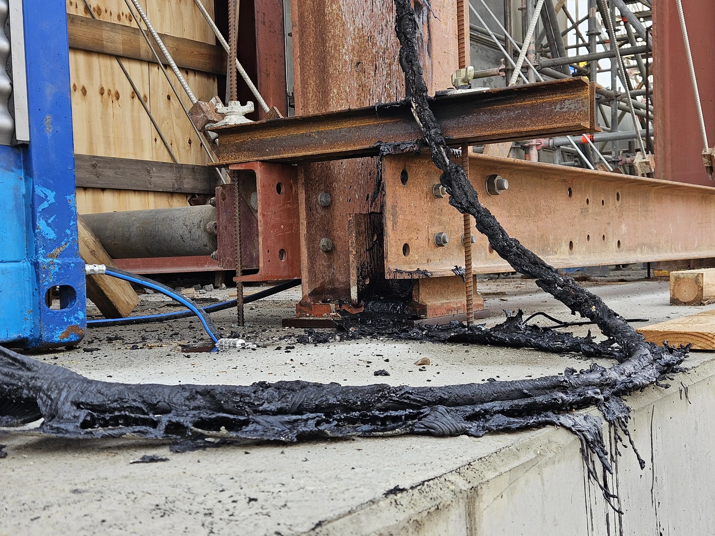 Auf der Großbaustelle der Georg-Schwarz-Brücke im Leipziger Westen hat es in der Nacht zu Sonntag gebrannt. Wie unser Reporter vor Ort berichtet, kam es an der Behelfsbrücke zwischen Leutzsch und Böhlitz-Ehrenberg zu einem Feuer. Demnach brannte es offenbar an einer Stromleitung am Auf- und Abgang „Am Ritterschlößchen“. Durch Spannung und Strom wurden Kabel und Ummantelung stark beschädigt. Auf dem Beton blieb ein schwarzer Klumpen zurück, außerdem lag starker Brandgeruch in der Luft. Der Fahrstuhl an der Brücke ist aktuell außer Betrieb.