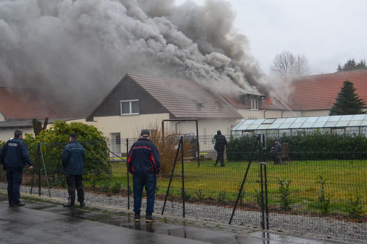 - Dicke Rauchwolken über dem Vierseitenhof. Die Leitstelle löst eine Warnung für die Bevölkerung aus