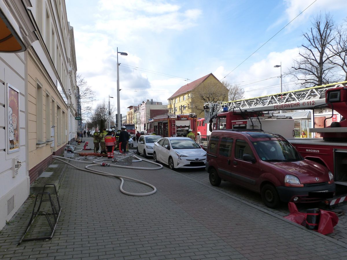 Feuerwehrleute haben einen Brand in einem Gewerbeobjekt an der Berliner Straße in Cottbus gelöscht. Verletzt wurde niemand. Vorsorglich hätten aber die Mieter darüberliegender Wohnungen das Haus verlassen müssen, teilte heute die Stadtverwaltung mit. Sie wurden vom Rettungsdienst betreut. Der Brand brach gestern Nachmittag in einer Küche aus.