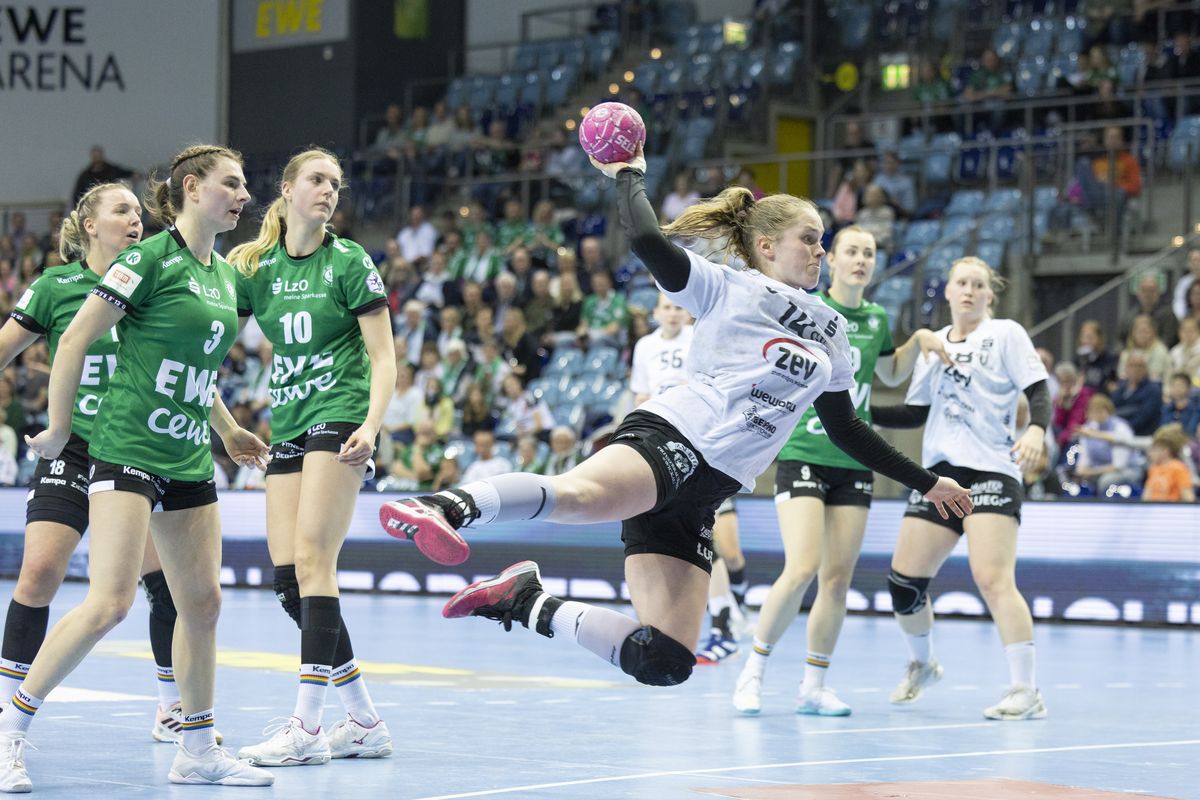 Kreisläuferin Natacha Buhl (am Ball) hofft auf einen Sieg in Neckarsulm und den vorzeitigen Klassenerhalt.